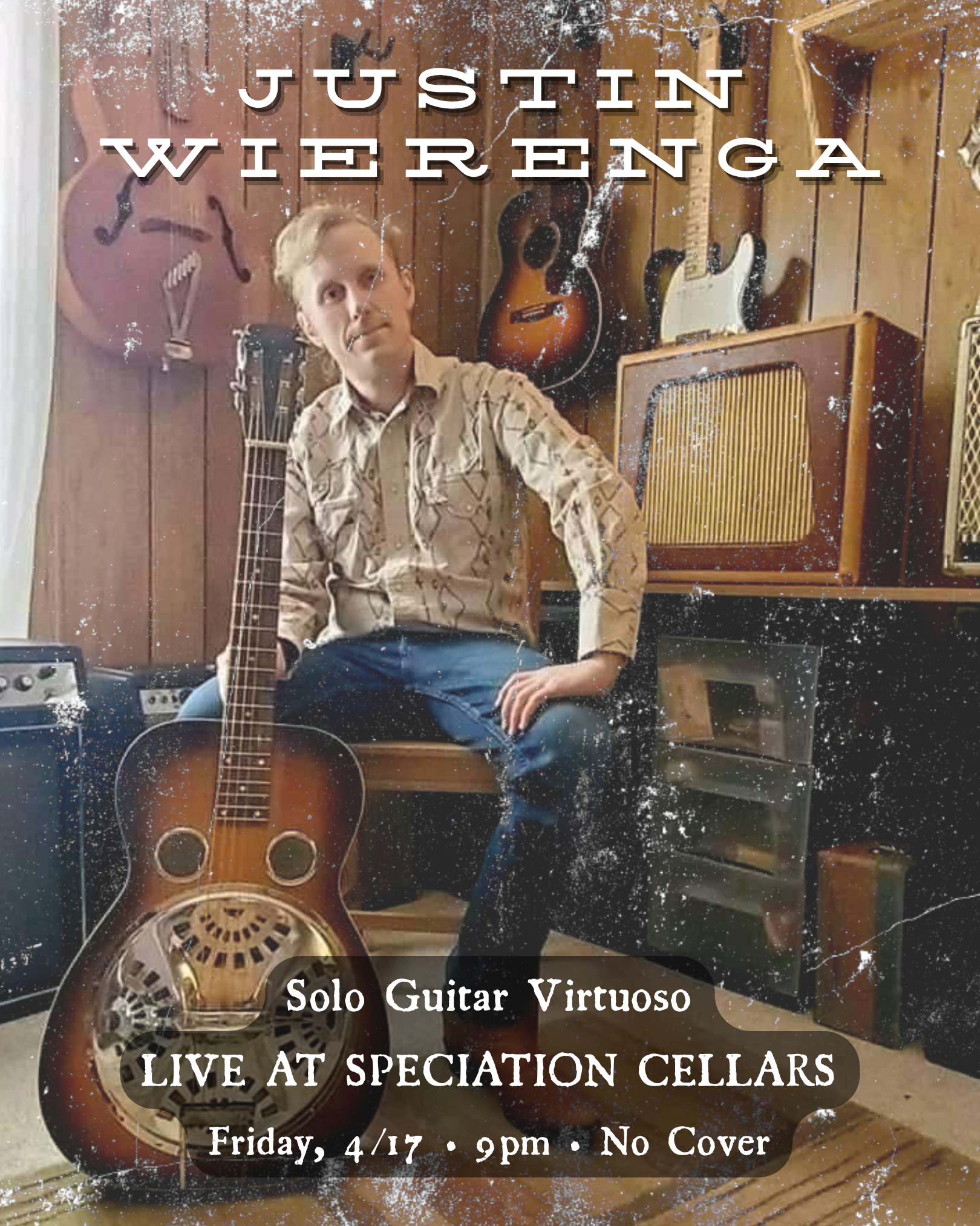 Justin Wierenga is one of West Michigan's most versatile and in-demand guitarists, and we're thrilled to have him join us for a solo performance. Whether he's playing lap steel, dobro, or electric, he brings a singular, hard-to-categorize sound that spans rock, folk, bluegrass, funk, and beyond. Come with an open ear… you won't be disappointed!
